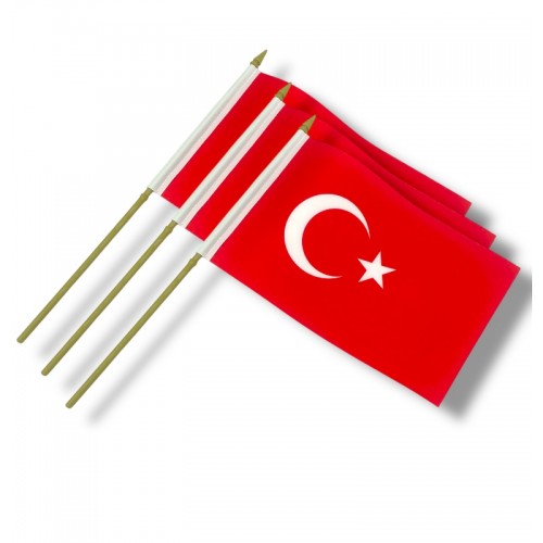 Dijital baskı çift kat saten Kumaşdan sıcak kesim yapılarak üretilmiştir. Plastik sopalı Türk Bayrağı, sopadan çıkmaması için özel tasarım 32 cm plastik çubuk kullanılmıştır.Türk Bayrak ebatı 15*22.5 cm,Türk Bayrağı parlaklığı ile çok şık ve alımlı göstermektedir.